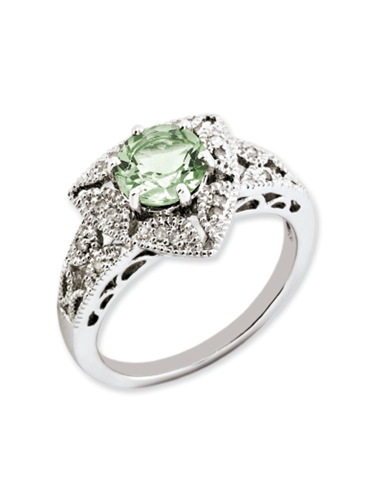 Round Green Quartz And Diamond Sterling Silver Shield Ring Walmart Com